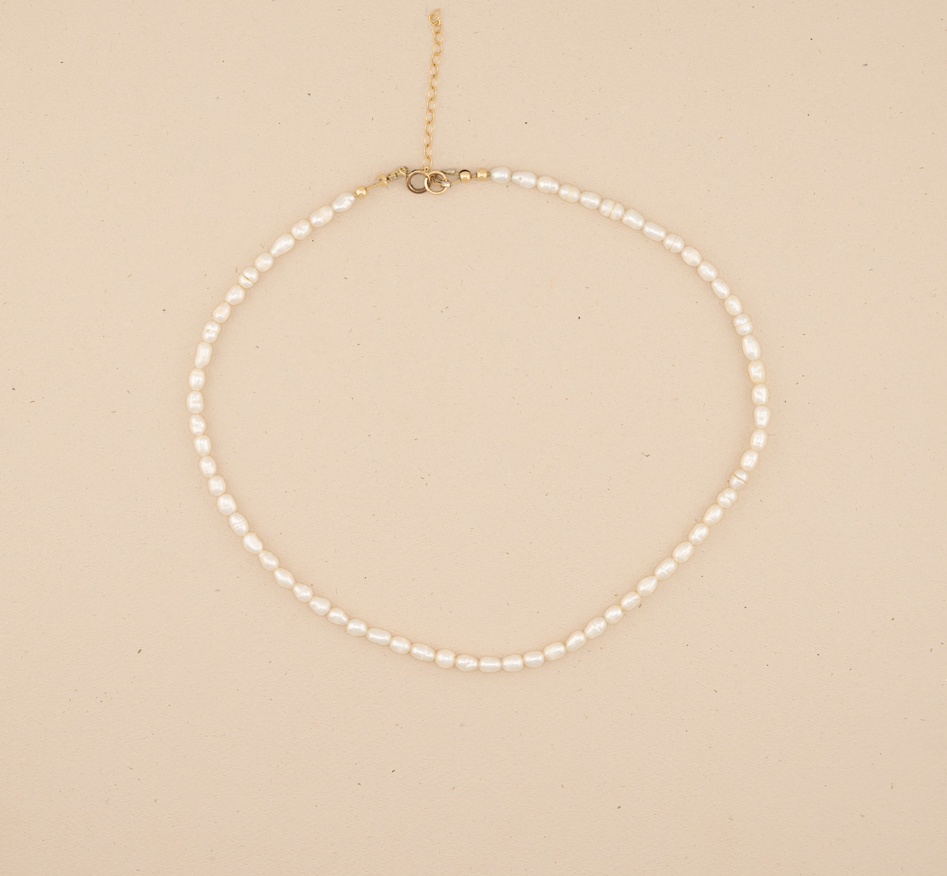 Inspired by the serene beauty of the ocean and the timeless appeal of classic jewelry, this delicate choker is designed to be worn effortlessly, whether you're dressing up a casual tee or adding the finishing sparkle to a night-out dress. Each pearl in this choker has been hand-selected for its lustrous shine and is strung together on a durable, yet delicate cord. The choker length sits perfectly at the base of your neck, making it the ideal base layer for stacking with longer necklaces and pendants.